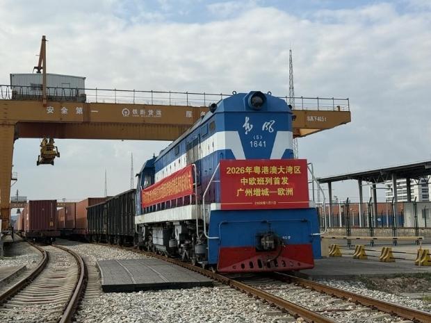 2026年元旦,粤港澳大湾区广州东部公铁联运枢纽增城铁路物流园内,新年第一趟中欧班列在汽笛声中缓缓驶出。班列满载家居用品、冬季保暖物资等“广货”,预计将于14天后抵达欧洲,为当地市场带去来自粤港澳大湾区的优质商品,也为新一年大湾区与欧亚之间的经贸往来拉开序幕。增城铁路物流园自2021年开行中欧班列以来,累计开行已超1500列。