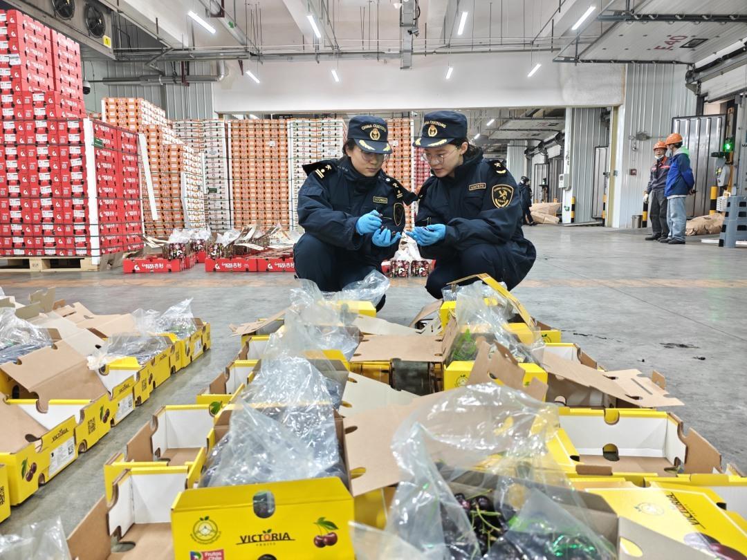 广州海关所属南沙海关对广州南沙口岸2026年首批进口车厘子进行监管