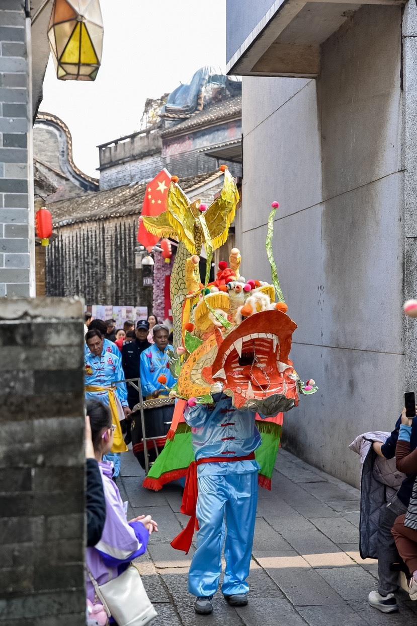 除了火爆的演艺盛宴,番禺区还在元旦假期推出一系列传统与潮流碰撞的特色活动,让市民游客在游玩中感受文化魅力,解锁多元文旅体验。沙湾古镇开启沙湾鳌鱼与沙沙湾湾IP巡游,巡游队伍每天沿南门至留耕堂的特色路线行进,游客穿梭在古色古香的街巷中,近距离感受非遗与潮流IP融合的奇妙魅力,沉浸式体验古镇的历史底蕴与鲜活活力。