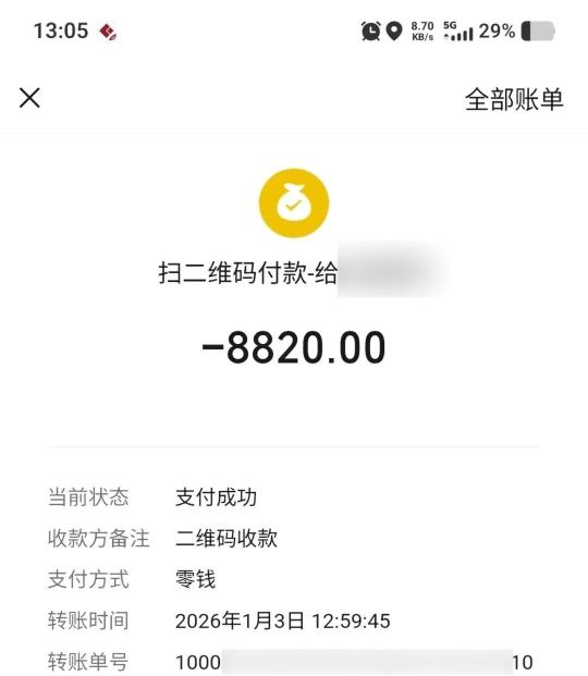 1月2日20时48分,潘希君驾驶出租车,接载一名乘客前往广州大道北。到达目的地时,计价器显示车费68元。乘客通过手机支付后便下车离开,潘师傅随即发现支付金额竟高达8888元,但乘客已不见踪影。
