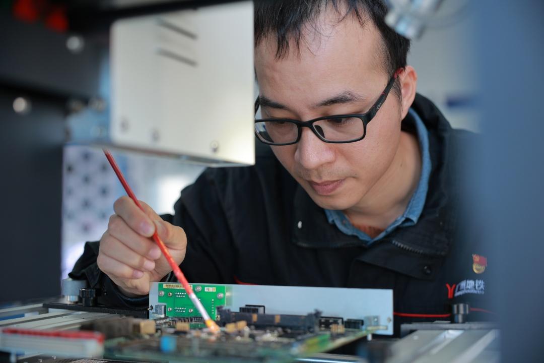 陈细弟作为全国劳模李天明工作室核心成员,深耕地铁电子维修领域,始终致力于技术攻关与创新实践。他攻坚克难,破解 45 种“卡脖子”电子部件维修难题,累计修复相关部件 1946 件,涉及原值达 6663 万元,有效缓解了运营备件短缺困境;优化管理,编写实施 6 项可靠性维修方案,完成 1237 件设备预防性维修,将故障率下降30%,显著降低运营风险;创新攻关,牵头研制 14 项自动化测试台,助力智慧维修落地见效;传承匠心,开展技术培训超 1200 人次,手把手带教 47 名徒弟成长为一线骨干,为地铁电子维修事业的可持续高质量发展筑牢人才根基。