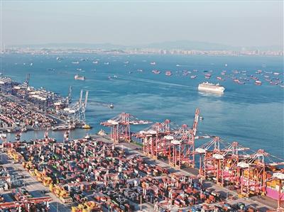 广州港南沙港区一派繁忙景象。广州日报全媒体记者郑洪达 摄