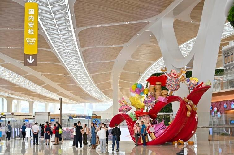 以木棉花苞为原型的42.6米瞭望塔、国内出发区“东山少爷”“西关小姐”造型的洗手间指引、遍布航站楼的大型艺术装置,共同构建起“羊城花冠”的文化符号。其中,九大核心艺术作品不仅成为旅客驻足观赏的打卡点,更成为展现广州城市形象的“空中文化展厅”,实现了空港服务与文化传播的有机融合。