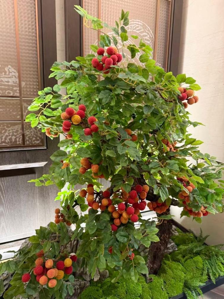 漫步广州白云机场T3航站楼,广州日报新花城记者发现不少细节之处体现着设计的匠心巧思。比如下图这一树荔枝佳果远看果实累累、枝繁叶茂,仔细看,红红的荔枝竟然是用一针一线手工钩织而成,造型逼真,传统的广州非遗之美在机场悄悄绽放。