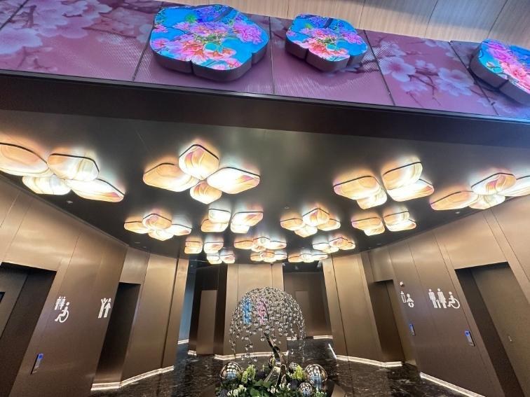 这颗直径6米、重达2.5吨的“星球”,凭借几乎隐形的航天级钛合金悬索,实现了气球般的视觉轻盈。表面特制的穿孔铝板覆以“纳米仿宣纸”涂层,使光线如岭南水墨般自然晕染。镶嵌的1200片智能玻璃随您的位置变换色彩,内部2048颗LED与自然光共舞——这正是埃利亚松多年来在多面体几何学研究的精粹,也是他艺术理念与中国文化精神的首次深度共鸣,科技与诗意在此完美融合。