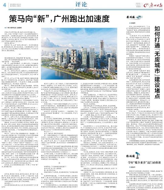 天下之事,非新无以为进。只要有求新求变的追求在、基因在、精气神在,这座城市必然新新不已、突破可期。2026年是“十五五”开局之年。广州向高而攀、向新勇进,勇争第一、不甘人后,必能跑出加速度、干出新业绩,跑好关键时期第一程!