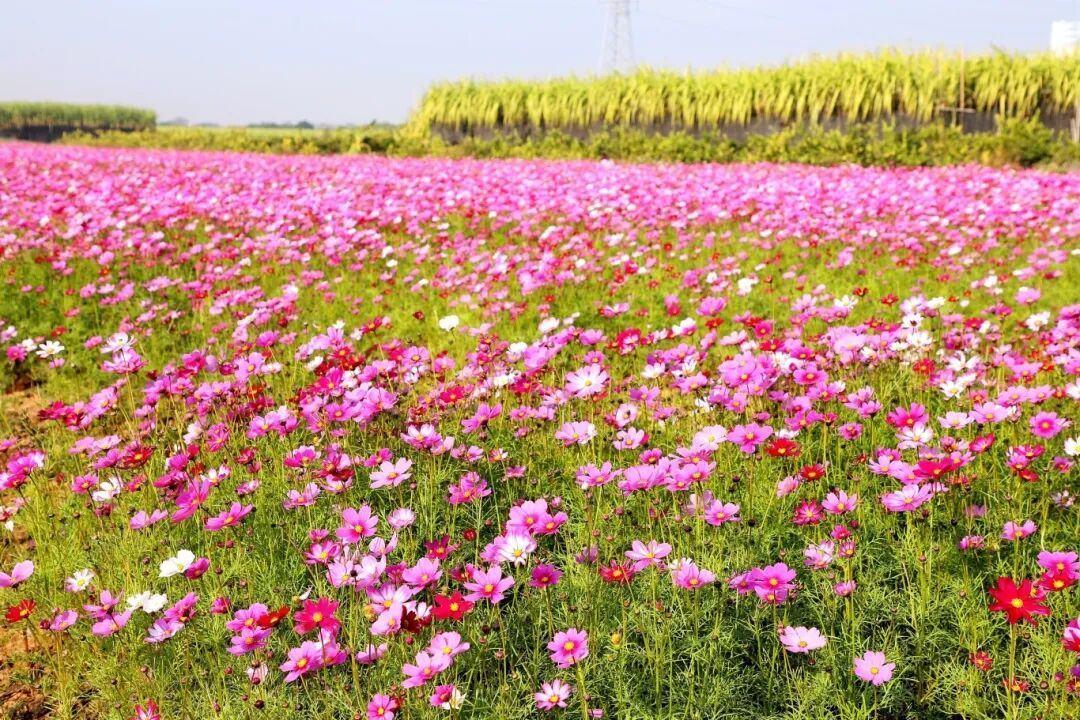 近日,位于南沙区榄核镇子沙村的格桑花海迎来最佳观赏期!这片位于广东省科学院南繁种业研究所现代农业科技示范基地的花海,已成为榄核镇的新晋“颜值担当”。粉、白、紫三色格桑花竞相绽放,搭配碧道、非遗晒场,田园气息浓厚。