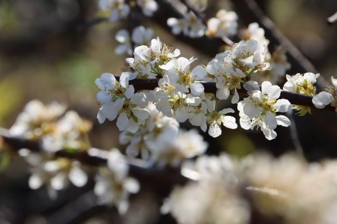 观赏特色:李树沿山地错落分布,呈现 “只见繁花不见叶” 意境,花瓣飘落如雪花纷飞