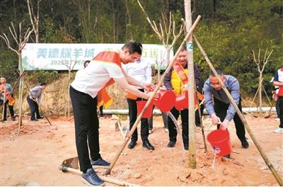 “美德耀羊城 喜迎十五运”2025年广州市“模范好人林”植树活动现场。