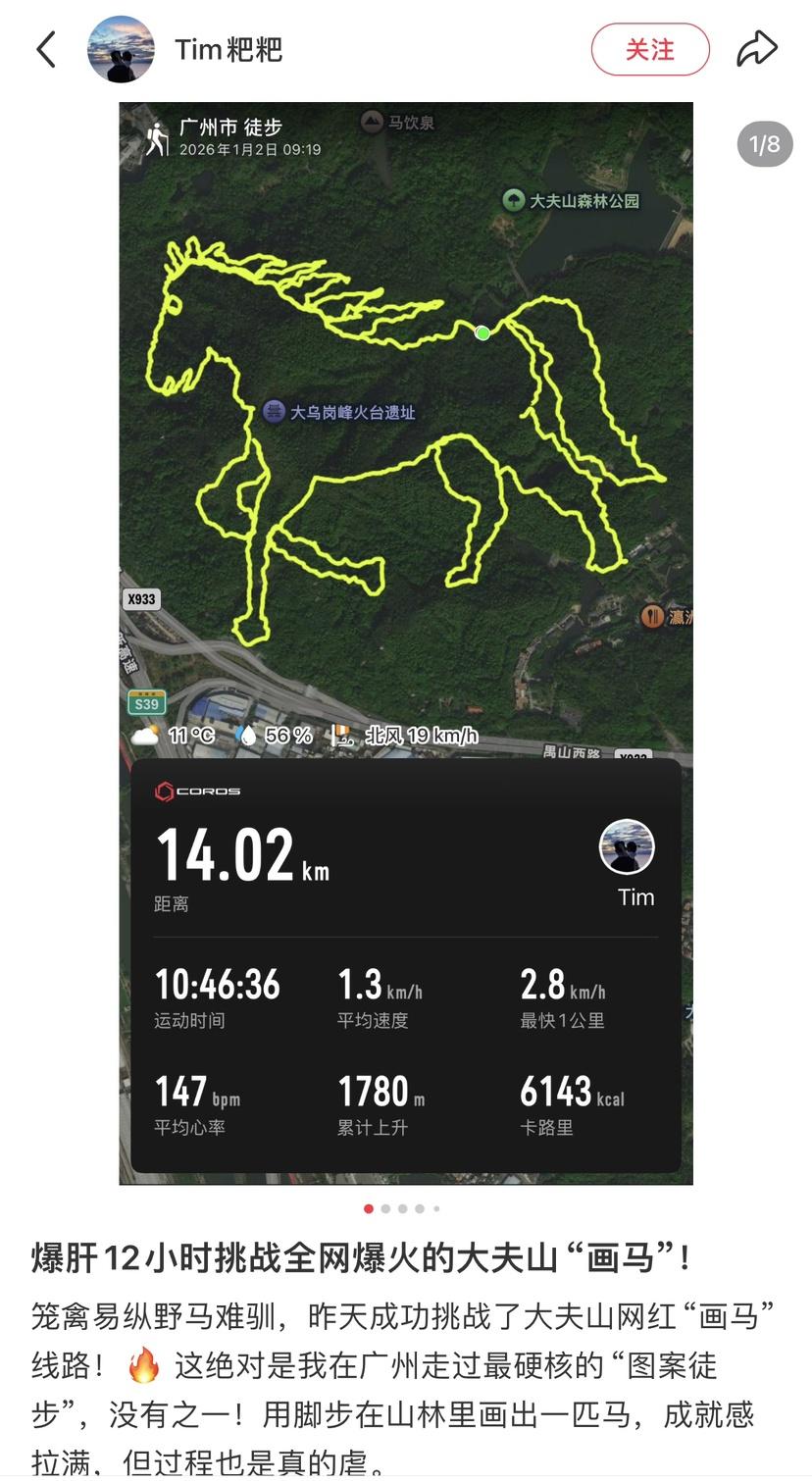 马年将至,在广州大夫山森林公园,一些徒步跑步爱好者发起了一种创意徒步玩法——“画马”。相关网络平台上,也流传着各种穿越路线攻略。