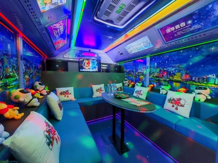 踏入车内,更是“别有洞天”,殿堂级音响系统带来极致的音乐享受,炫彩的灯光随着节奏激情律动。车内设有点歌机,乘客可以自选曲目聆听甚至演唱。不仅如此,每晚19点45分班次的“移动音乐派对巴士”还有专业歌手驻唱,让乘客在行驶途中沉浸式感受“流动音乐会” 的独特魅力。