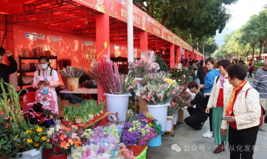 亮点:今年从化区迎春花市共设置年桔、文创、花卉盆景、鲜花、挥春、水族、预包装食品、美食及公益等展区,覆盖各种新春需求,为市民提供了一站式采购游玩体验。