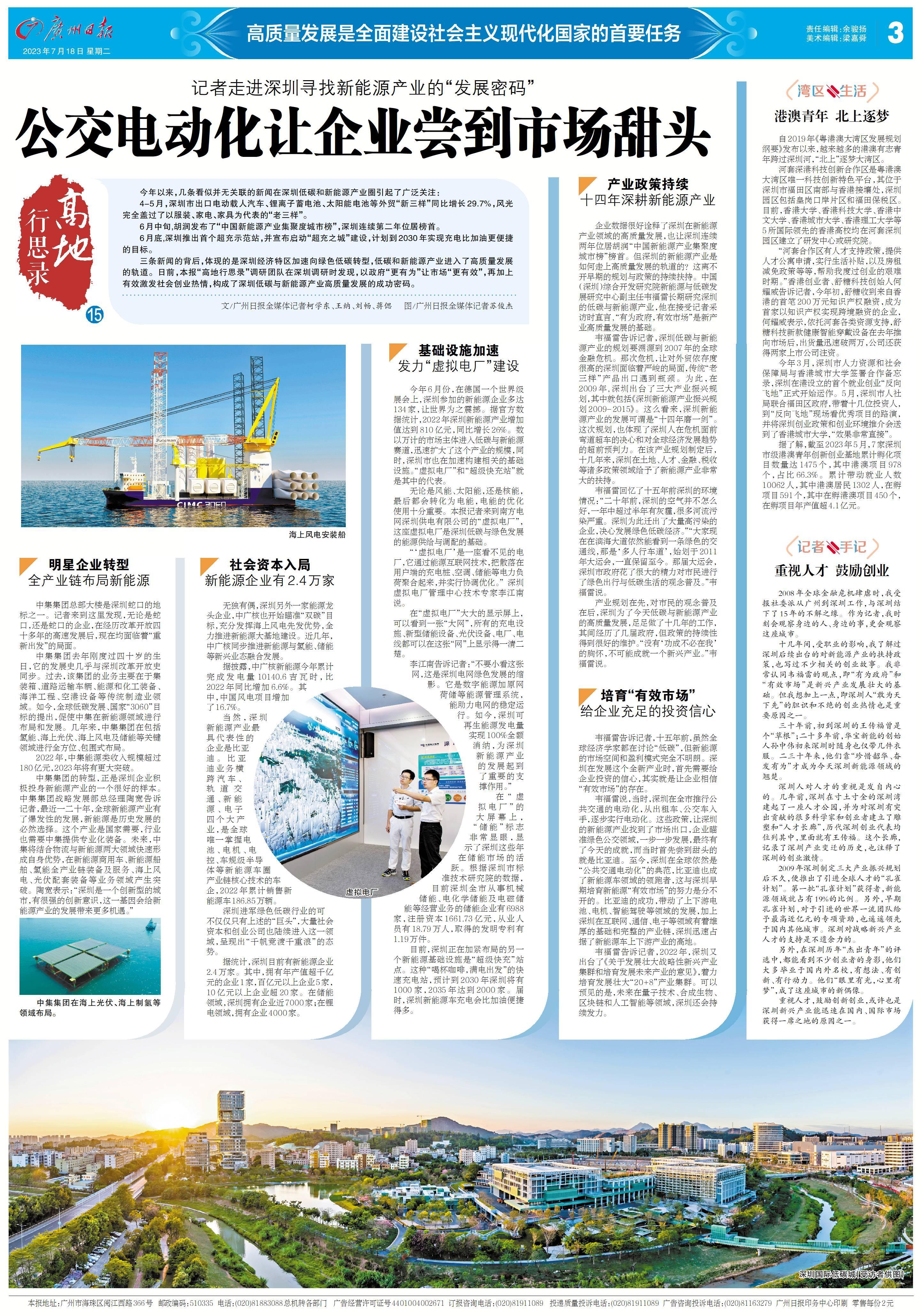 三条新闻的背后,体现的是深圳经济特区加速向绿色低碳转型,低碳和新能源产业进入了高质量发展的轨道。日前,本报“高地行思录”调研团队在深圳调研时发现,以政府“更有为”让市场“更有效”,再加上有效激发社会创业热情,构成了深圳低碳与新能源产业高质量发展的成功密码。