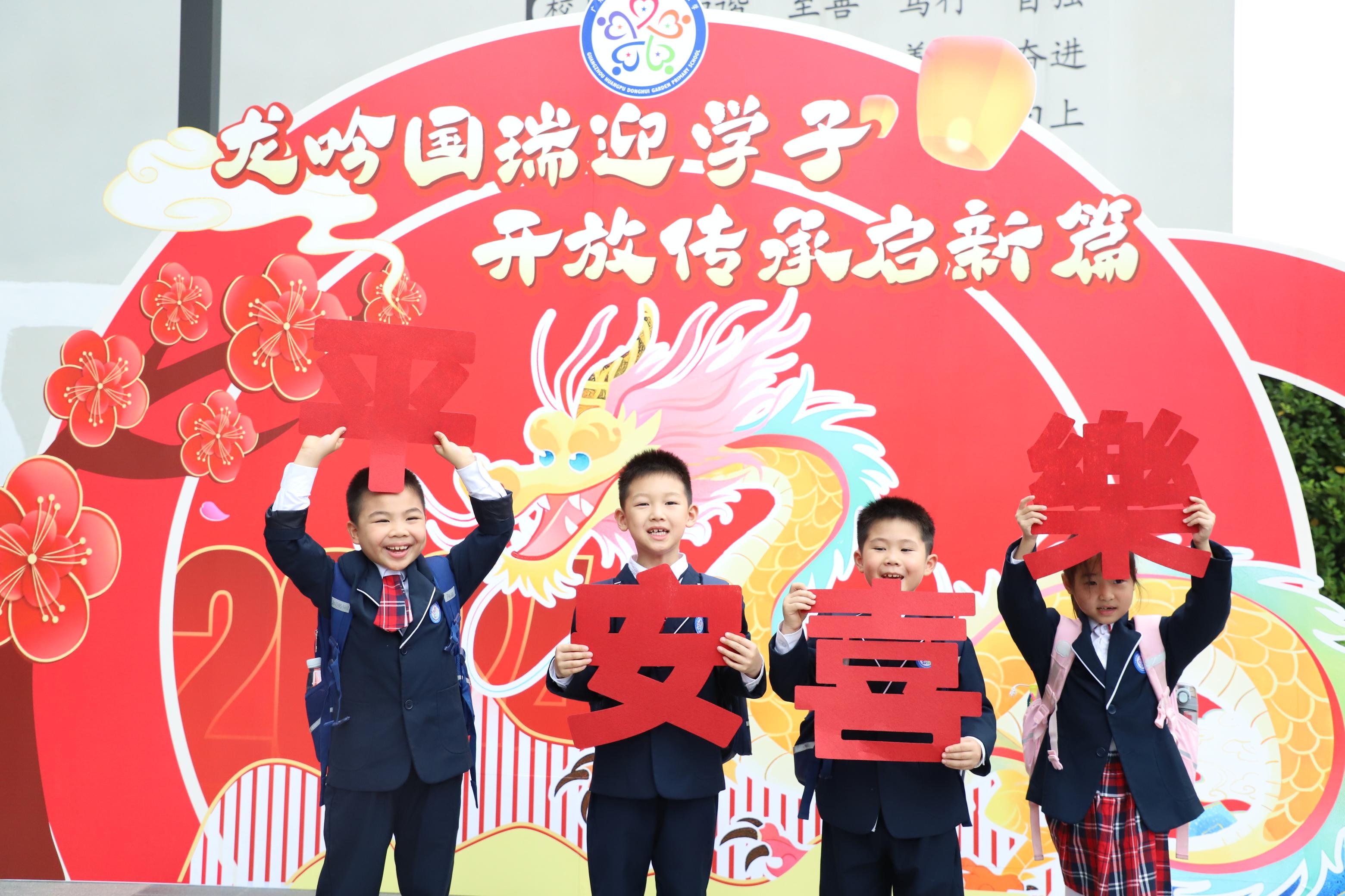 入龙门,接福气,立志向,做祥龙。北校区的孩子们行入门礼,接祝福红包,并将心愿贴成祥龙。开学典礼上,黄埔区消防救援大队龙班长带来安全教育,校长郭云海勉励同学们学习上奋发努力,实践中敢于创新,立志在中国式现代化建设中挺膺担当!