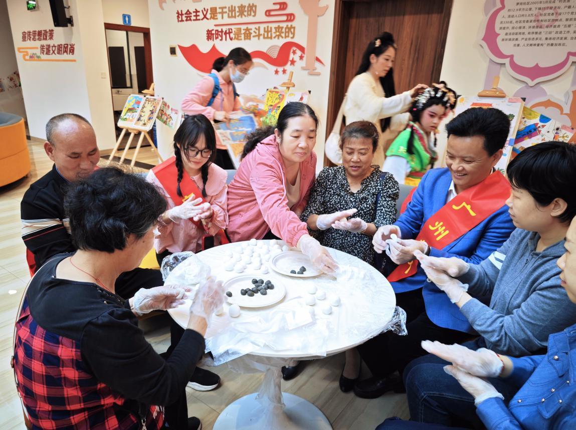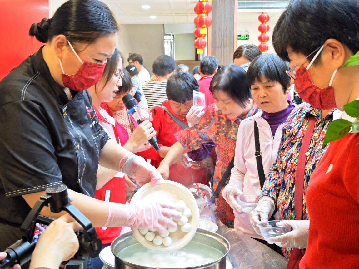 作为历史悠久的传统节日,人们常常以猜灯谜、吃汤圆、赏花灯等方式迎接元宵节的到来。室内舞台表演结束后,领导嘉宾与市民群众围坐成4个大桌,在厨艺老师何敏的指导下齐包汤圆。“搓糯米团时不要用太大力气,搓圆后按扁再放入馅料……”何敏一面向大家讲解搓汤圆的步骤,一面示范制作汤圆。不一会儿,圆溜溜的汤圆便摆满了4桌。
