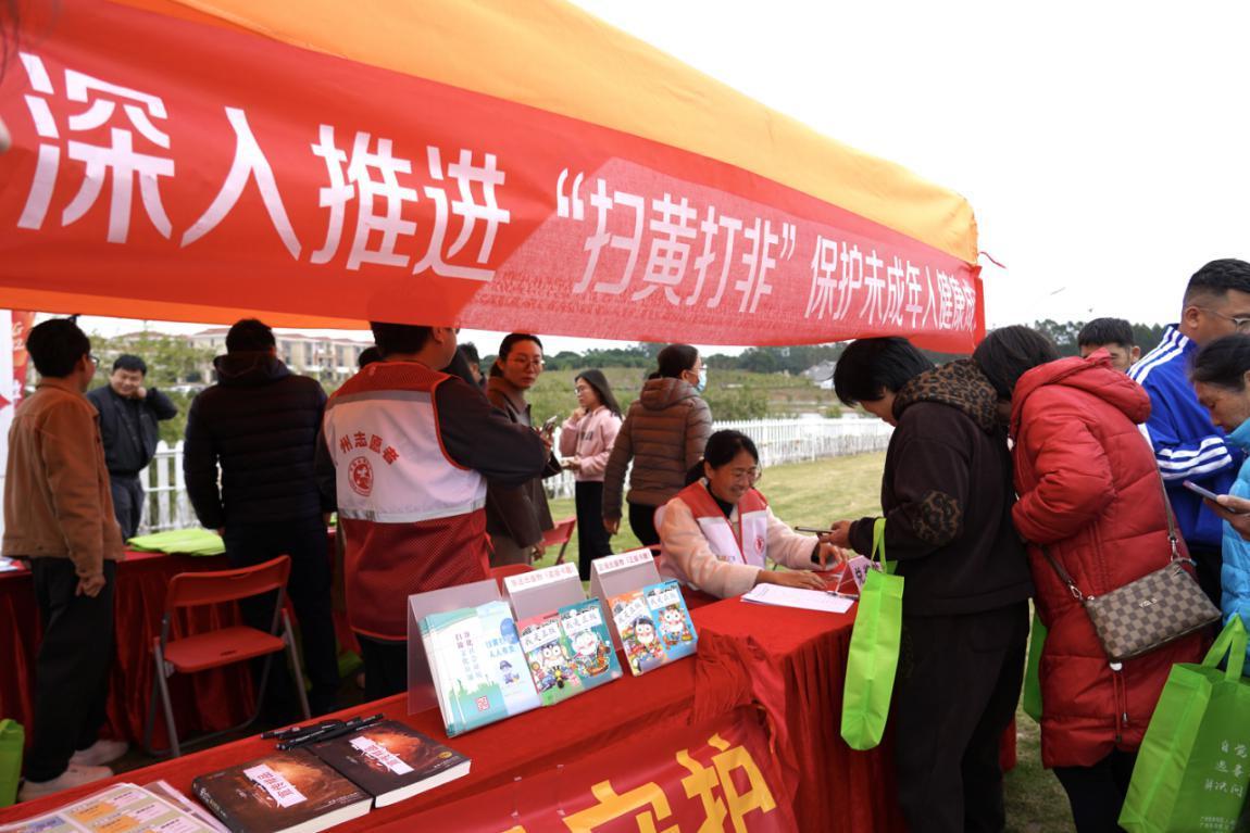 灯谜区旁,13个“文明集市”政策宣传摊位依次排开。摊位前,老百姓与“摊主”不是“讨价还价”,而是问起了“新政策”。司法所、妇联、禁毒、工会、卫健等单位,带来最新政策宣传、法律援助等服务,让村民在家门口乐享一份热气腾腾的“惠民年货”。而在舞台区,“百千万工程”知识和元宵习俗知识有奖问答,又掀起活动的另一个小高潮。