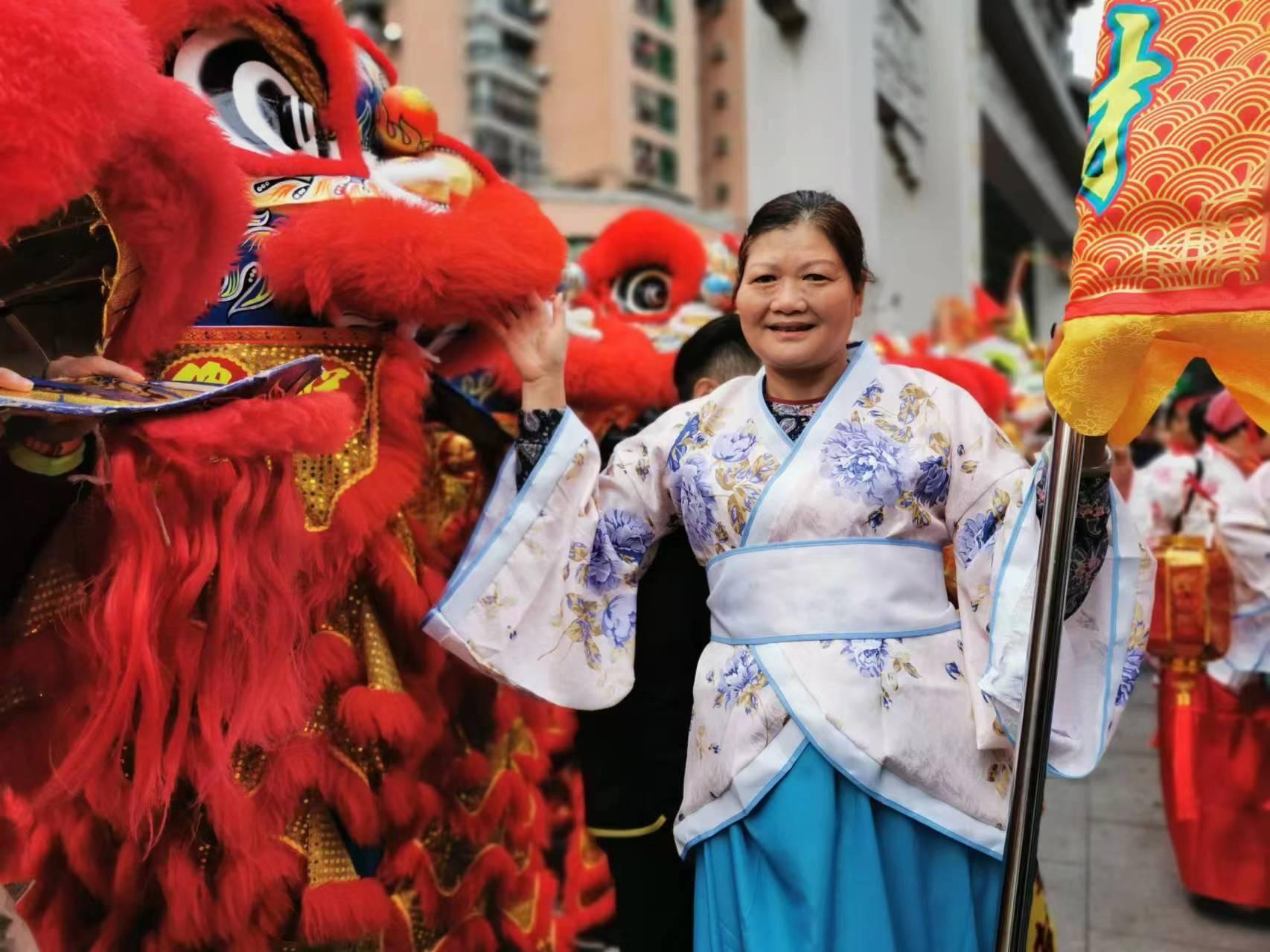 市民与醒狮互动。信息时报记者 张玉琴 摄