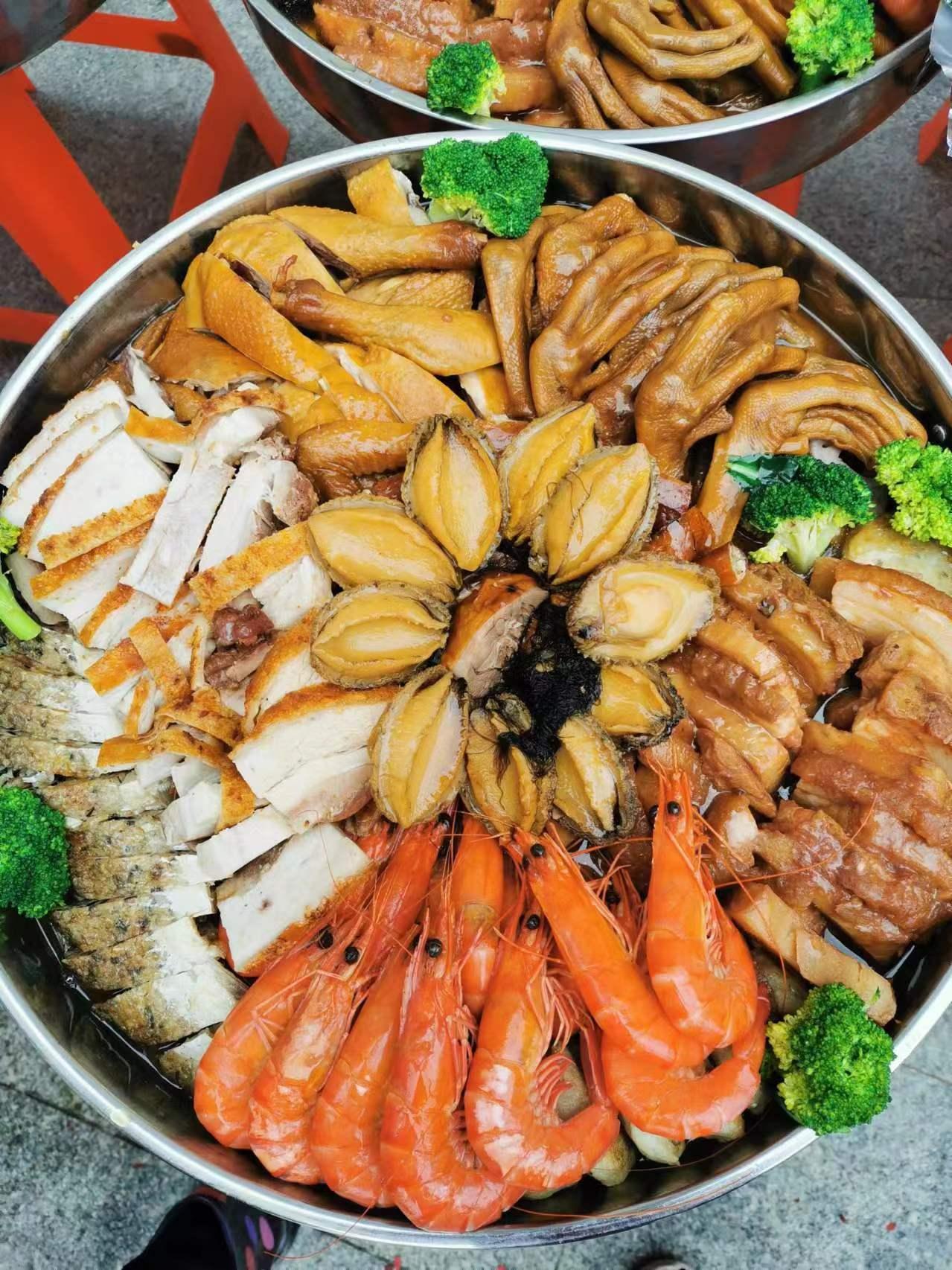 中午时分,杨箕村在杨箕小区、祠堂区域等地开设午宴,邀请村民族人及来宾朋友一起欢聚一堂,共享大盆菜,共庆佳节。