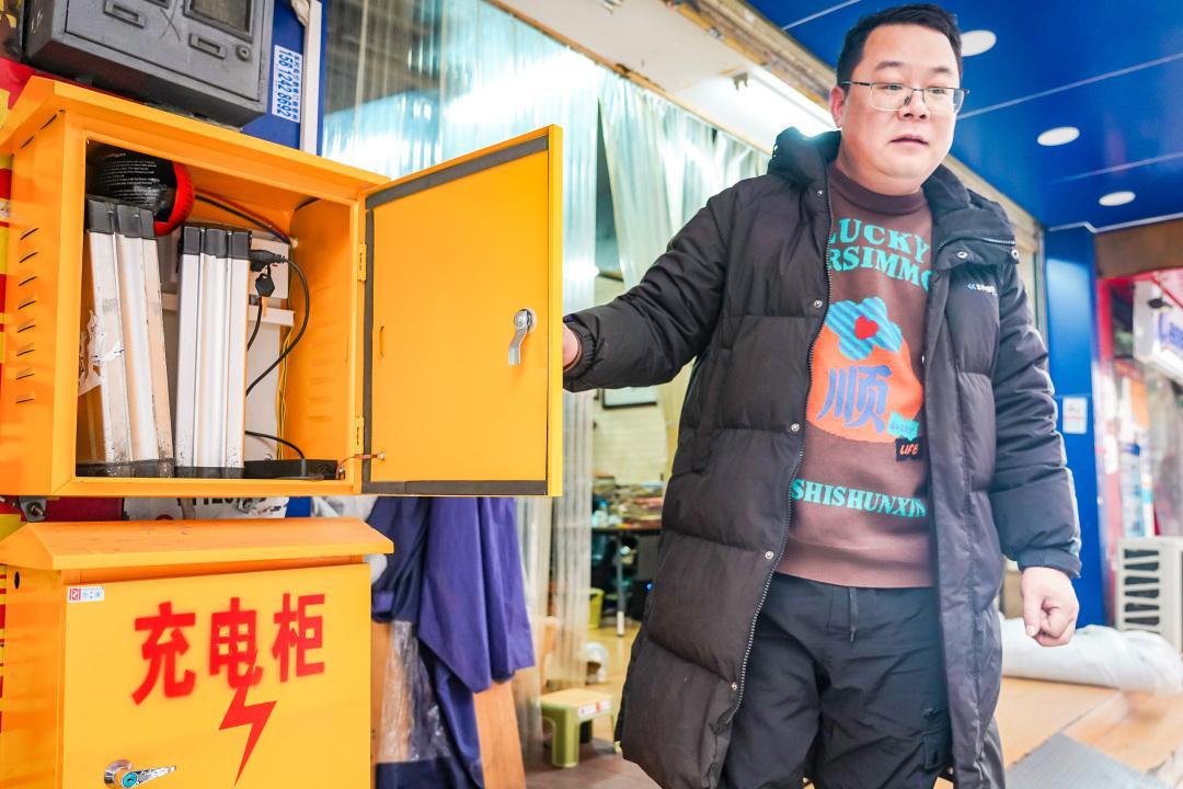 王先生是临街店铺的租户,他去年按社区的要求在室外安装了充电柜。他说:“以前是插室内的插座,‘飞线’在门口充,现在安装了充电柜,将电池放进去充,整条街一个店面一个柜子,安全了不少。”