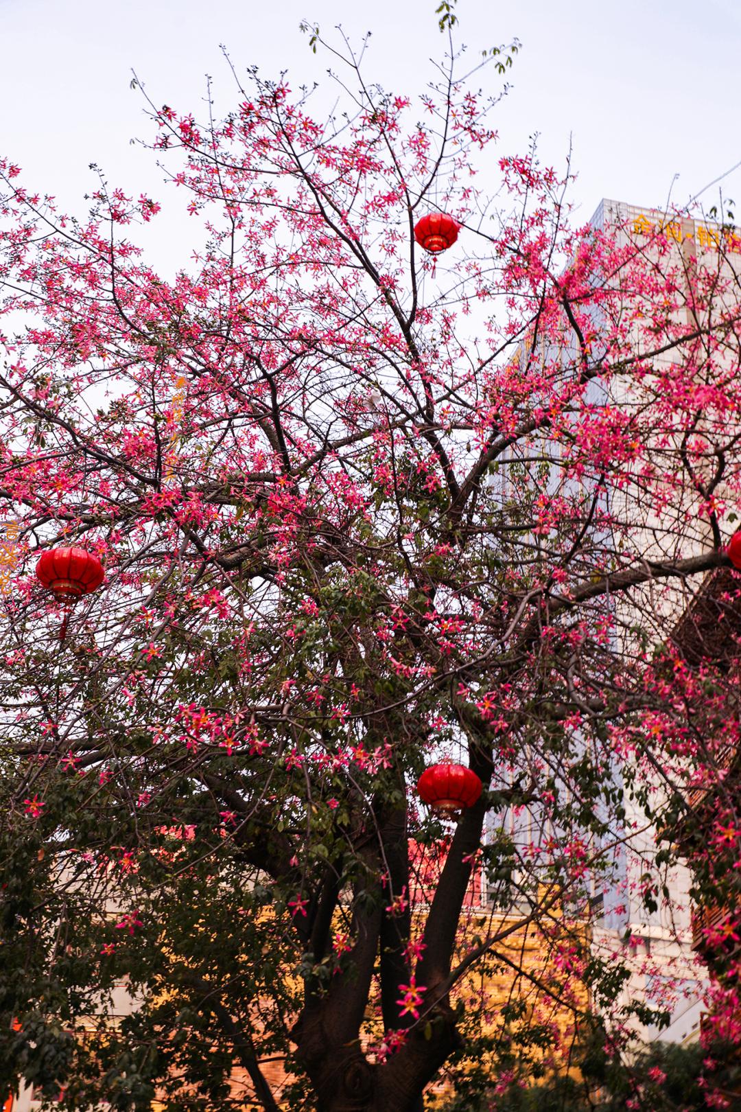 近日,在广州越秀区西湖路“大佛寺”的大门口,有一株美丽异木棉,繁花满枝,鲜艳的花朵映照天空。在广州其他地方,异木棉盛花期已过。而这株异木棉,在2月下旬,还是满树繁花开不尽。路过的市民,纷纷驻足留步,拿出手机拍摄留念。夜幕降临,华灯璀璨,异木棉的花色更烂漫、更迷人。
