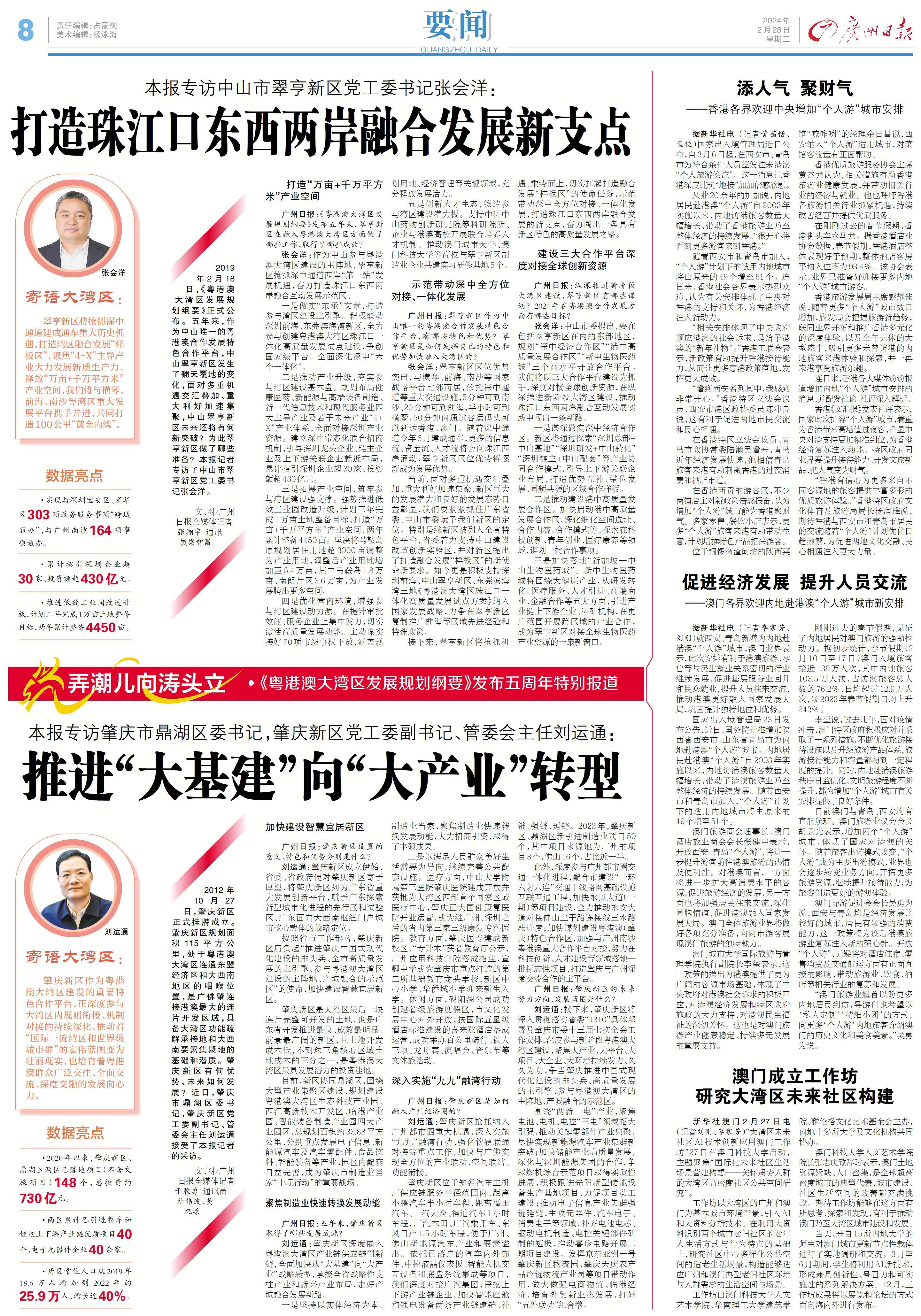 广州日报:纵深推进新阶段大湾区建设,翠亨新区有哪些谋划?2024年在粤港澳合作发展方面有哪些目标?