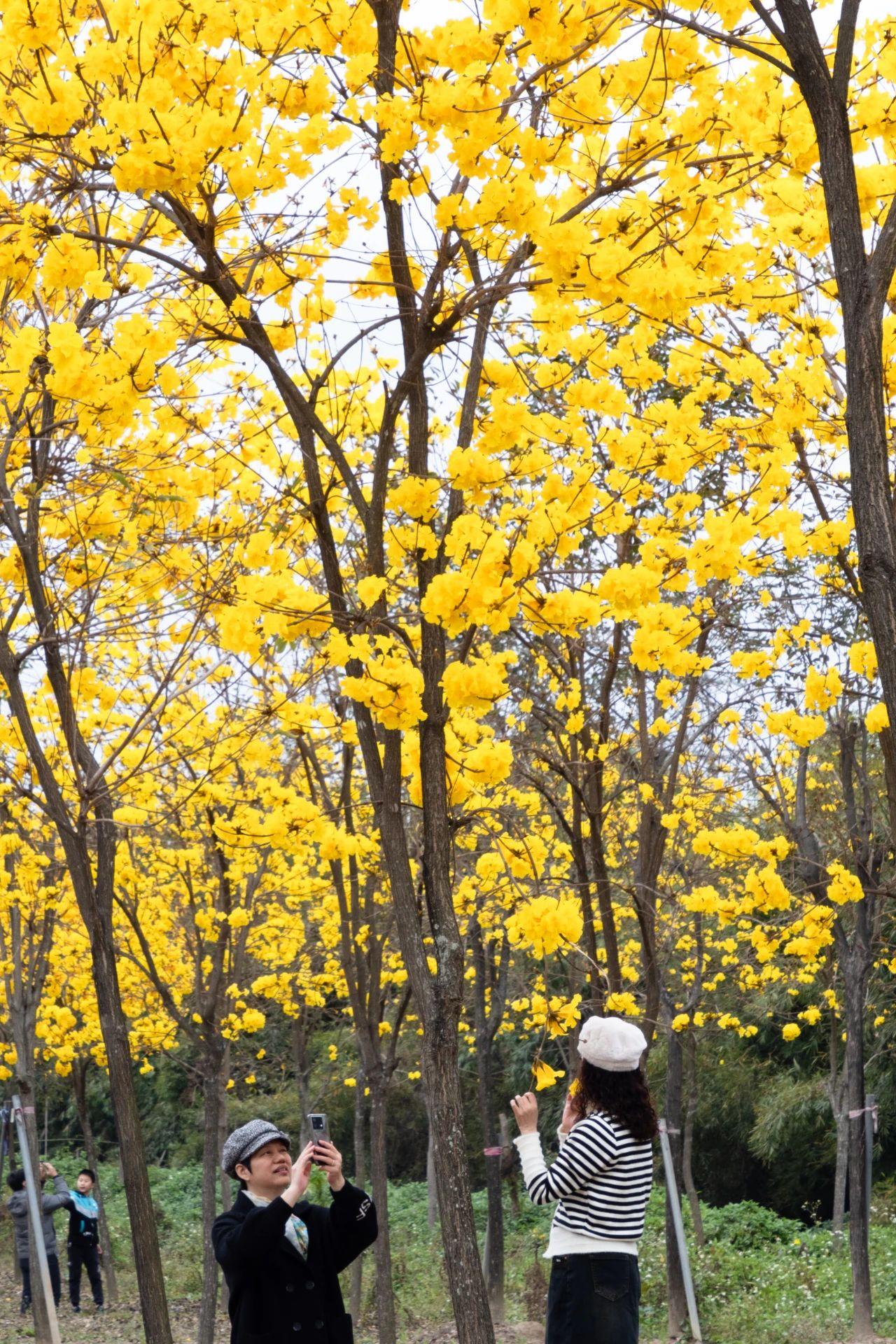 与花期较长的紫花风铃木不同,黄花风铃木的花期较短,街坊们赏花要抓紧时间。