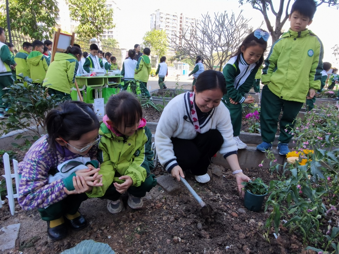 3月12日,广州市花都区新雅小学举行“慧耕园”挂牌仪式暨2024年春季学期“最美小农田”劳动实践成果评比活动。