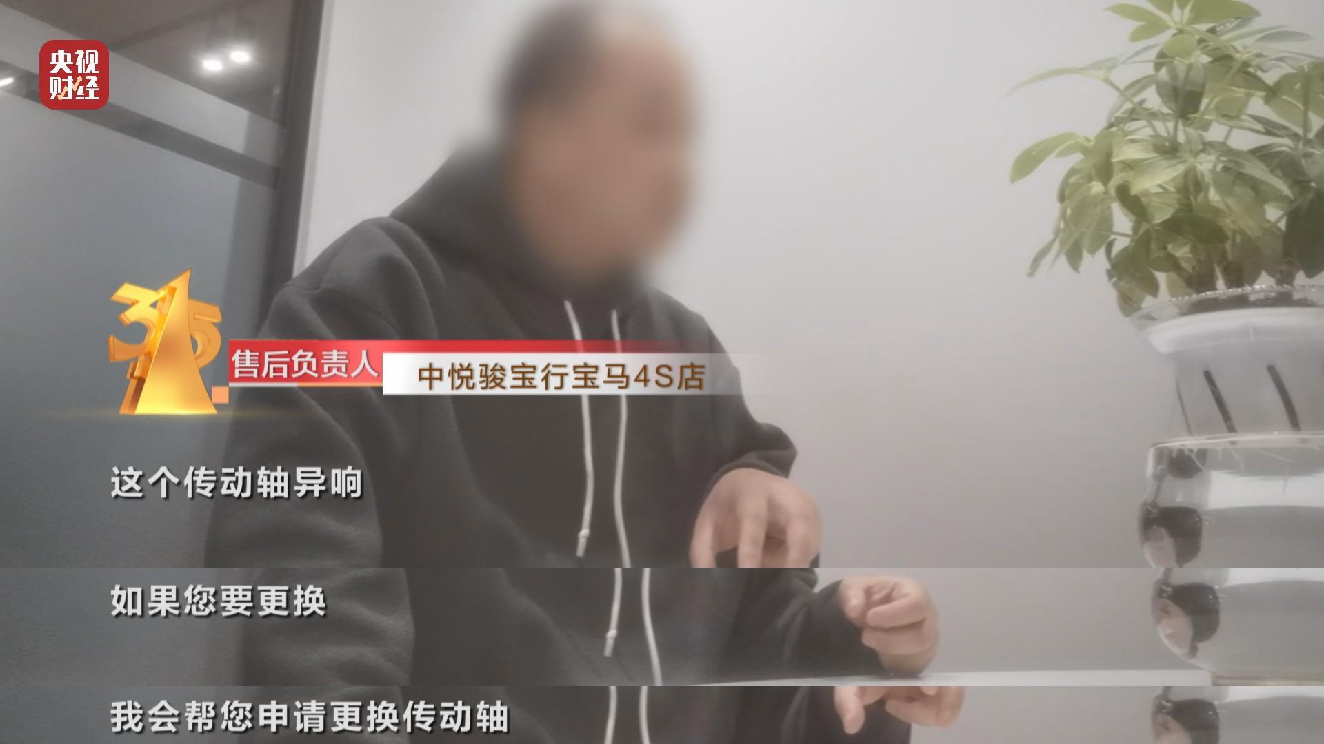 中悦骏宝行宝马4S店售后负责人:如果需要更换,会帮忙申请更换传动轴。
