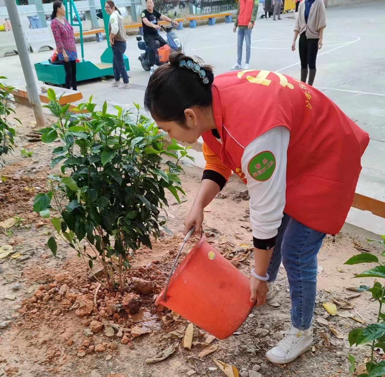 3月12日上午,骏兴社区妇联组织由社区巾帼志愿者、党员及社区妇女居民代表组成的乡村志愿植树队,在康泰园、金碧园小区内开展植树活动,种下一片“巾帼林”。