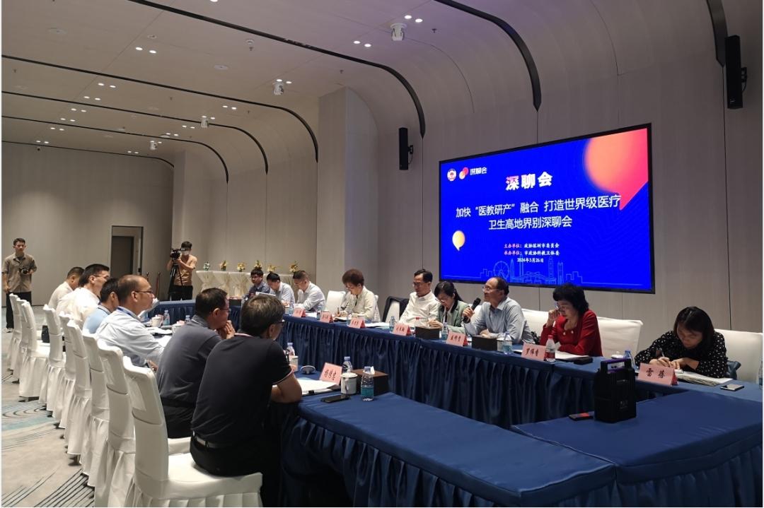 “深聊会”上,来自深圳市政协医卫界别的政协委员们对“医教研产”融合发展问题进行了深度研讨。针对生物实验设备技术“瓶颈”的问题,市政协委员、中国医学科学院肿瘤医院深圳医院党委副书记盛修贵指出,国产实验设备研发制造要下功夫提质量。市政协常委、医药卫生界别召集人、深圳市中医院急诊科主任刘禹翔提出,深圳高水平临床研究应加速提质,希望研究机构和医疗机构共同推动合作。