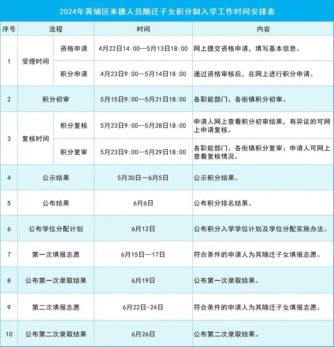 4月1日,广州市黄埔区教育局在其官方微信公众号“广州黄埔教育”,发布2024年黄埔区积分入学申请指南。2024年黄埔区来穗人员随迁子女积分制入学申请受理工作将于4月22日14点开始。