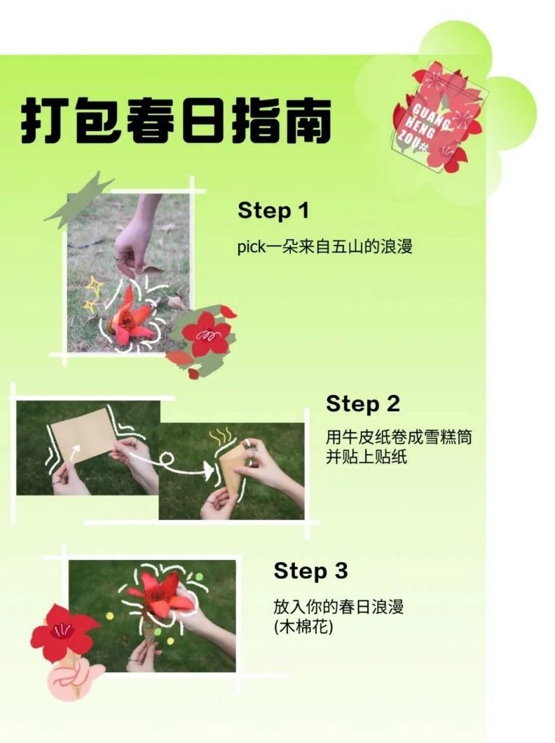 学生创业团队——广横走创意工作室发起“交换浪漫,让春日流动起来”主题活动,以木棉花为主要载体,将“木棉拾忆”活动的影响范围扩大到其他校区。木棉拓印画、交换浪漫、带着你的华园浪漫打卡、“华园最浪漫”评选等一系列活动,将在4月初陆续开展,让各个校区间的红色浪漫和绿色春意都流动、分享起来。