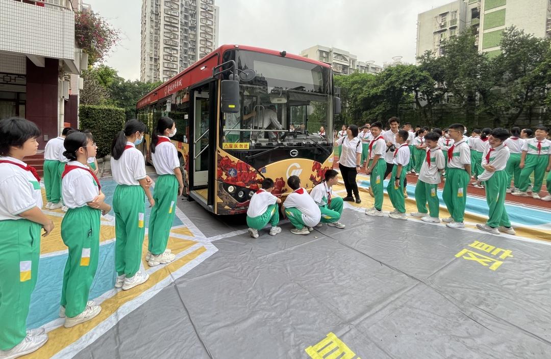 南武学子在真实情境的体验中,了解什么是“公交盲区”及其危险性,沉浸式学习交通安全知识,并在车长娓娓道来“英雄花开英雄城”主题车设计理念、公交车上亲历的见义勇为先进事迹的过程中,感受英雄城的英雄文化。