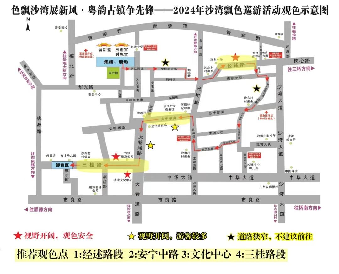为了大家可以安全开心愉快地观看飘色,记者根据沿线的观色情况为大家整理了推荐观色点,大家可以参考下图示意点前往观色: