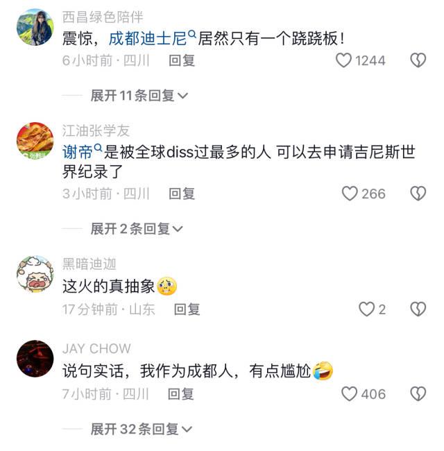 这波操作更是“圈”了一波粉,“成都对年轻人的抽象行为很包容”“成都才配有中国的第三个迪士尼”等评论让成都这个城市再次被捧上热搜。