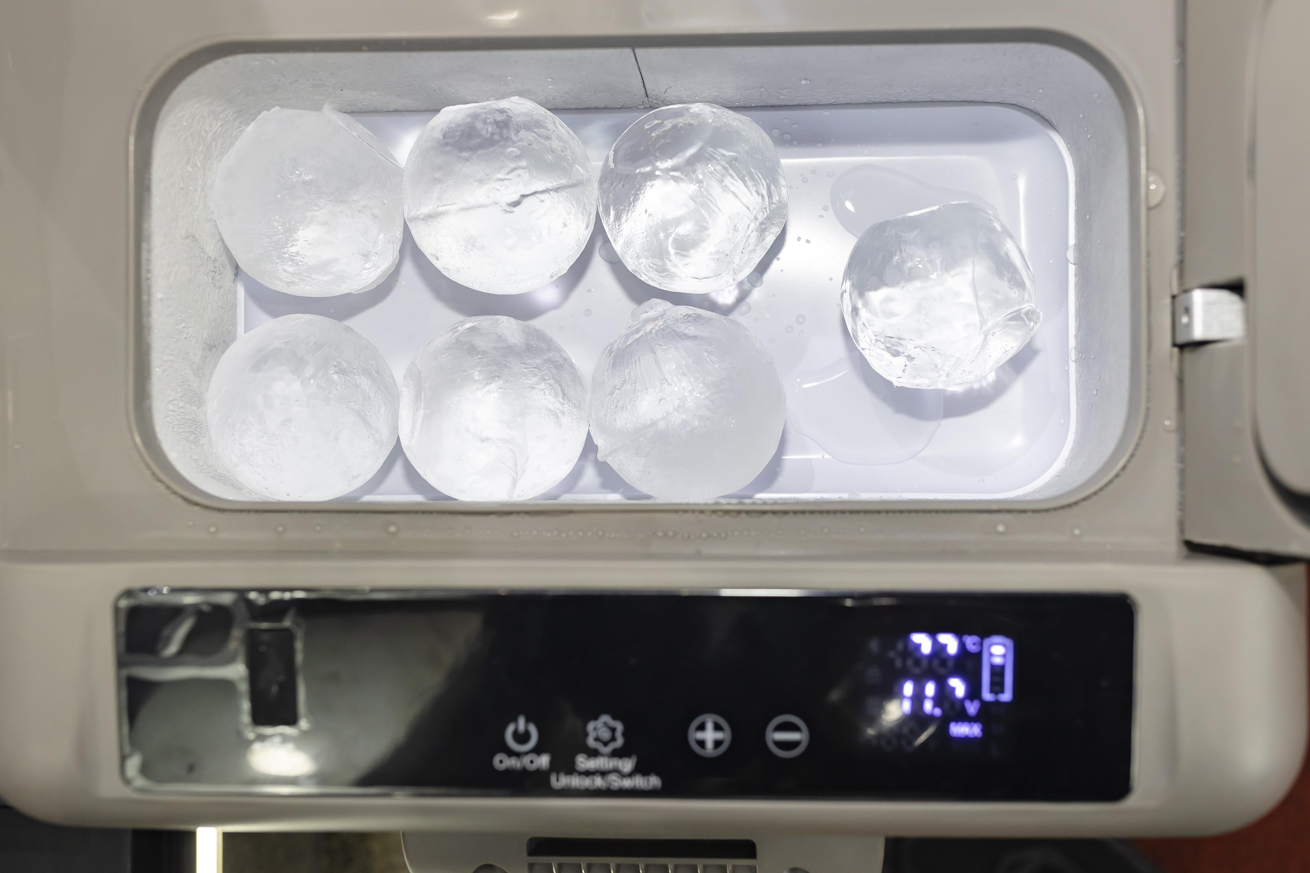 “对于制冷设备来说,制冰是件非常容易的事,但是自己有经验的朋友可能会知道,想要自己冻出一块透明无气泡的方形冰块已经是非常难了,更不用说一个球形冰块。”工作人员向记者介绍,这款球形制冰机运用720°立体速冷技术,全方位冷冻,通过自研核心技术——DD透明技术,能将冰球内的气泡聚集并排出,让冰球变得美观而透明。此外,它还有UVC杀菌功能,每次出冰前都会对制冰模块进行杀菌,保证冰球的清洁。