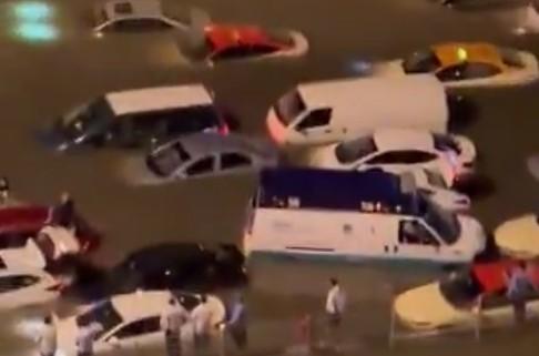 降雨致使阿联酋各地街道和机场停机坪出现巨大池塘,车辆被浸泡至仅剩顶部露出。狂风导致航班中断。视频画面显示,整个机场泡在水中,飞机艰难滑行。