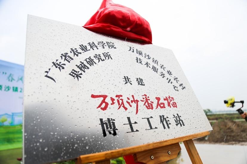 活动现场,由广东省农业科学院果树研究所党委书记钟小雄、万顷沙镇党委书记高飞共同为万顷沙番石榴博士工作站挂牌。近年来,万顷沙镇以实施“百千万工程”为契机,将番石榴产业作为万顷沙镇特色产业,万顷沙镇与广东省农业科学院果树研究所共建万顷沙番石榴博士工作站,在科研成果转化、关键技术研究和农业科技培训上进行深度合作。