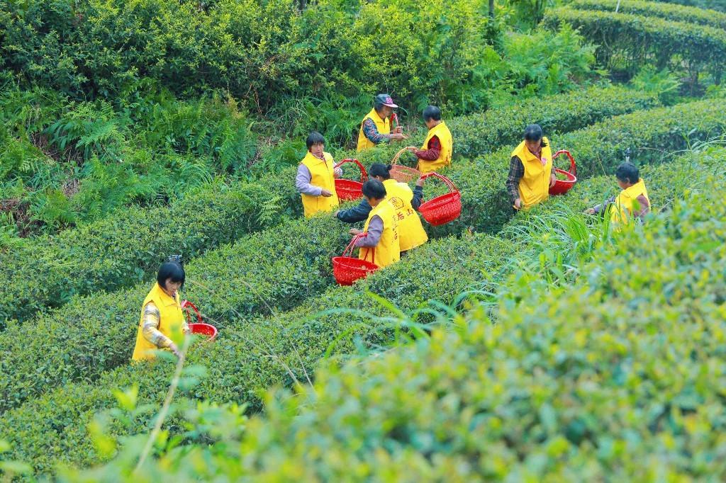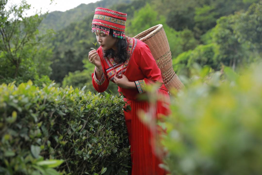 茶艺表演、山歌对唱……头采现场仪式感满满。红花绿叶映茶园,丝丝春雨润心田。在皇后山脉下,连片的茶园像是巨大的绿毯铺满大地,壮乡妹挎着竹篓,在翠绿的茶园间穿行,手指飞扬间,一片片嫩芽落入篓中......茶山、壮妹、茶叶相映成趣,勾勒出一幅茶香满溢的乡村振兴新画卷。