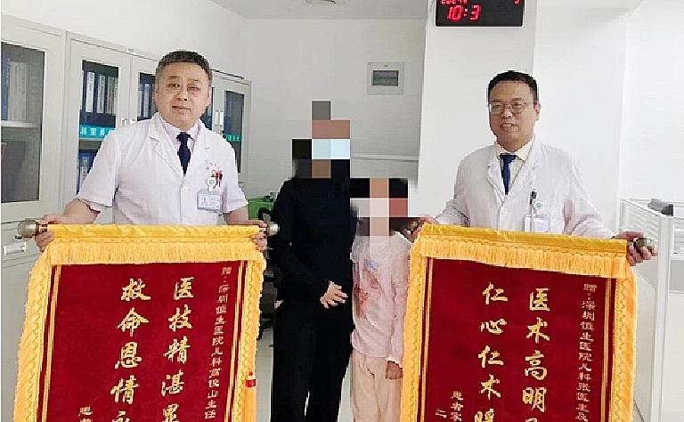 思思妈妈带着女儿送来锦旗。康复出院后,思思一家给深圳恒生医院儿科的医务人员送来了锦旗,以表感激。思思妈妈感激地说:“因为你们的及时抢救,宝贝没有因为缺氧而受到脑损伤,真的十分感谢。”