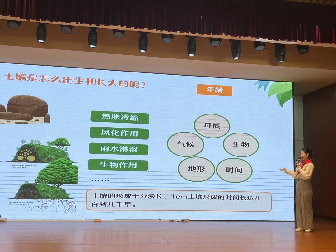 “一厘米健康土壤形成的时间就需要几百到几千年。土壤经过那么漫长的时间来到我们身边,却是风一吹就散了,正如我们的地球环境经过了长时间的形成,才给了我们现在这么好的环境。可是如果我们不珍惜,不好好地保护地球,可能这样美好的环境也将消散。”在夏冰卿的讲解中,同学们逐步意识到保护土壤、保护环境的重要性。