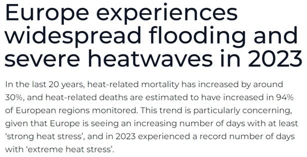 报告警告说,欧洲未来会经历持续时间更长、程度更严重的热浪,加上人口老龄化和更多的人搬到城市居住,热浪对公共健康会产生“严重影响”。