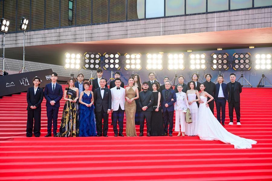 4月14日,第42届香港电影金像奖颁奖典礼在香港文化中心举行,图为电影《白日之下》的主创人员出席红地毯仪式。新华社记者 朱炜 摄
