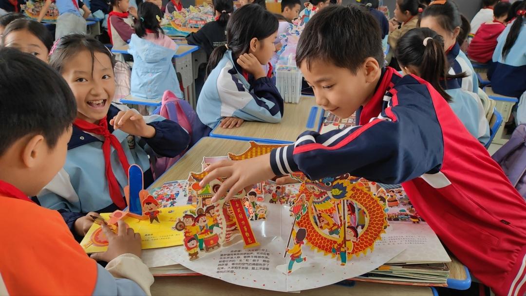 当同学们打开《最美中国节》这本3D立体绘本的一刻,每个节日的精彩画面竟然都“跳”出了图书,跃然纸上,展现在同学们的眼前!“哇~”课室里孩子们的欢呼声此起彼伏,孩子们翻开立体绘本的一刻,由心感受到阅读原来可以如此有趣!