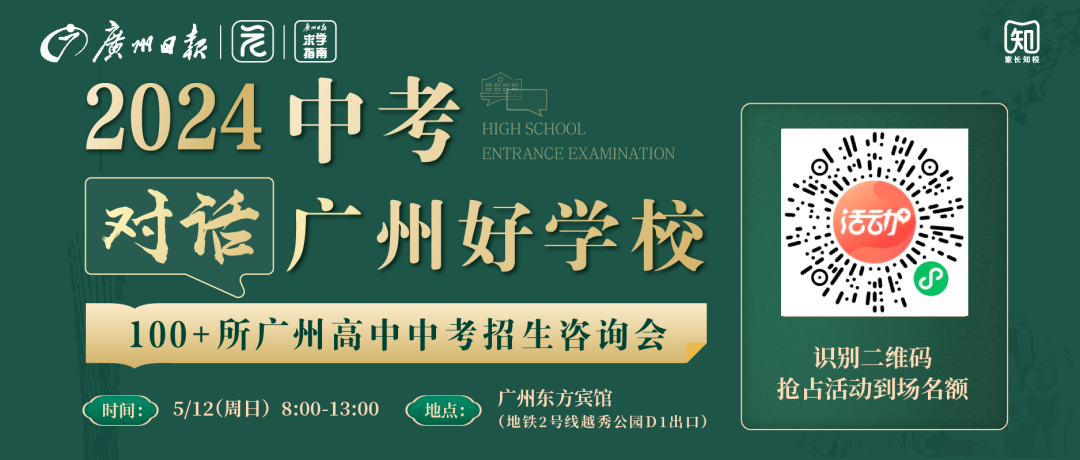 在志愿填报即将到来之际,为了帮助应届广州中考家庭规划好填报策略,并且一次性获取所有学校的招生信息,广州日报将联合“家长知校”在5月12日邀请超过100所高中阶段学校的招生负责人举办广州优质高中阶段学校大型咨询会。