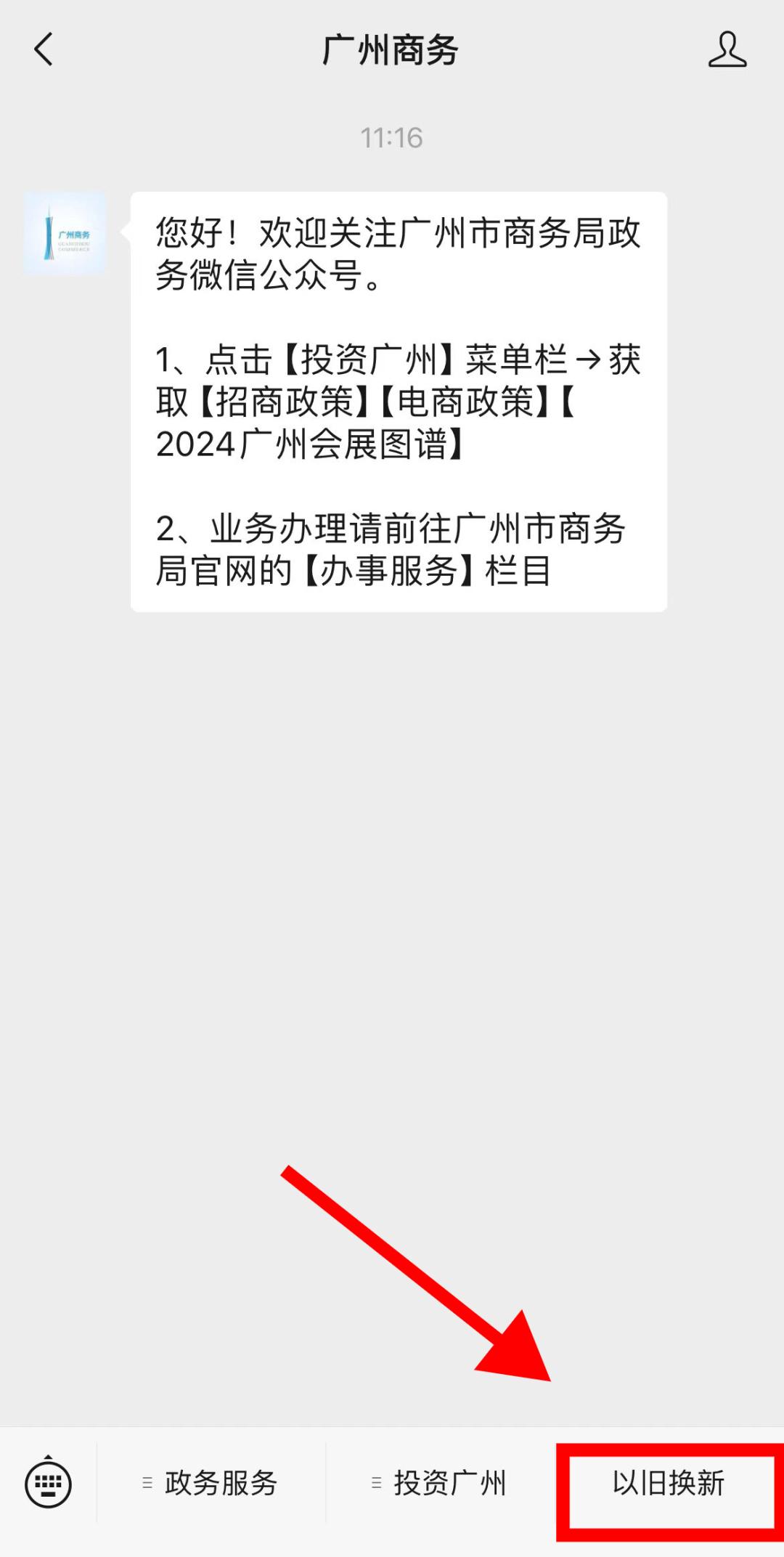 方式一:关注“广州商务”微信公众号,首页点击菜单栏【以旧换新】,可直达申领入口。