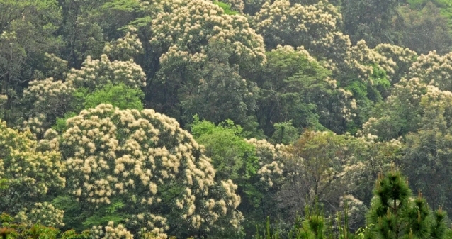 据在水库大坝脚下看守门闸的联民村村民李大叔介绍,这几种花会在每年的四、五月份开放,花期长达一至两个月。其中,木荷具有较好的耐火、抗火、难燃的特性,是中国珍贵的用材树种;油桐树也有很多用处,果实可以制作桐油,过去经济落后年代,老辈人经常上山采摘果实拿到收购站售卖换钱贴补家用。