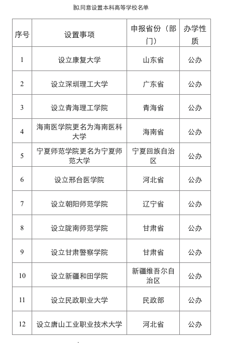 5月15日,教育部发布《关于拟同意设置本科高等学校的公示》(简称《公示》),拟同意设置24所学校。其中,在广东省拟同意设置深圳理工大学和广东轻工职业技术大学。