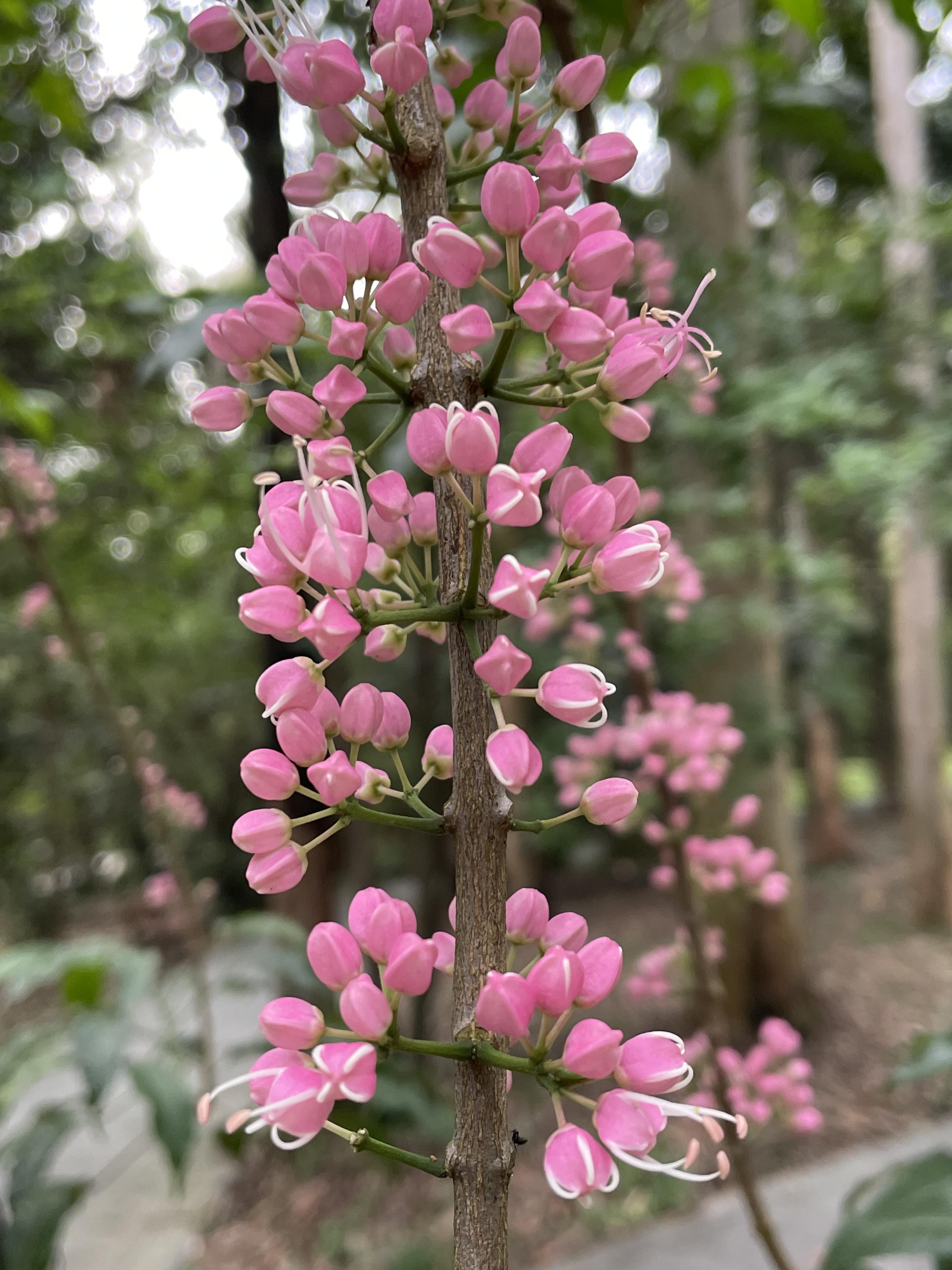 春夏之交,华南国家植物园里的奇花异草风情万种,令人目不暇接。近日,来自澳大利亚的红茱萸在澳洲植物专类园内迎来盛花期,茎干和枝条上缀满粉红色的精致小花,不但花型奇特且飘着淡淡的甜香味,充满异域风情。