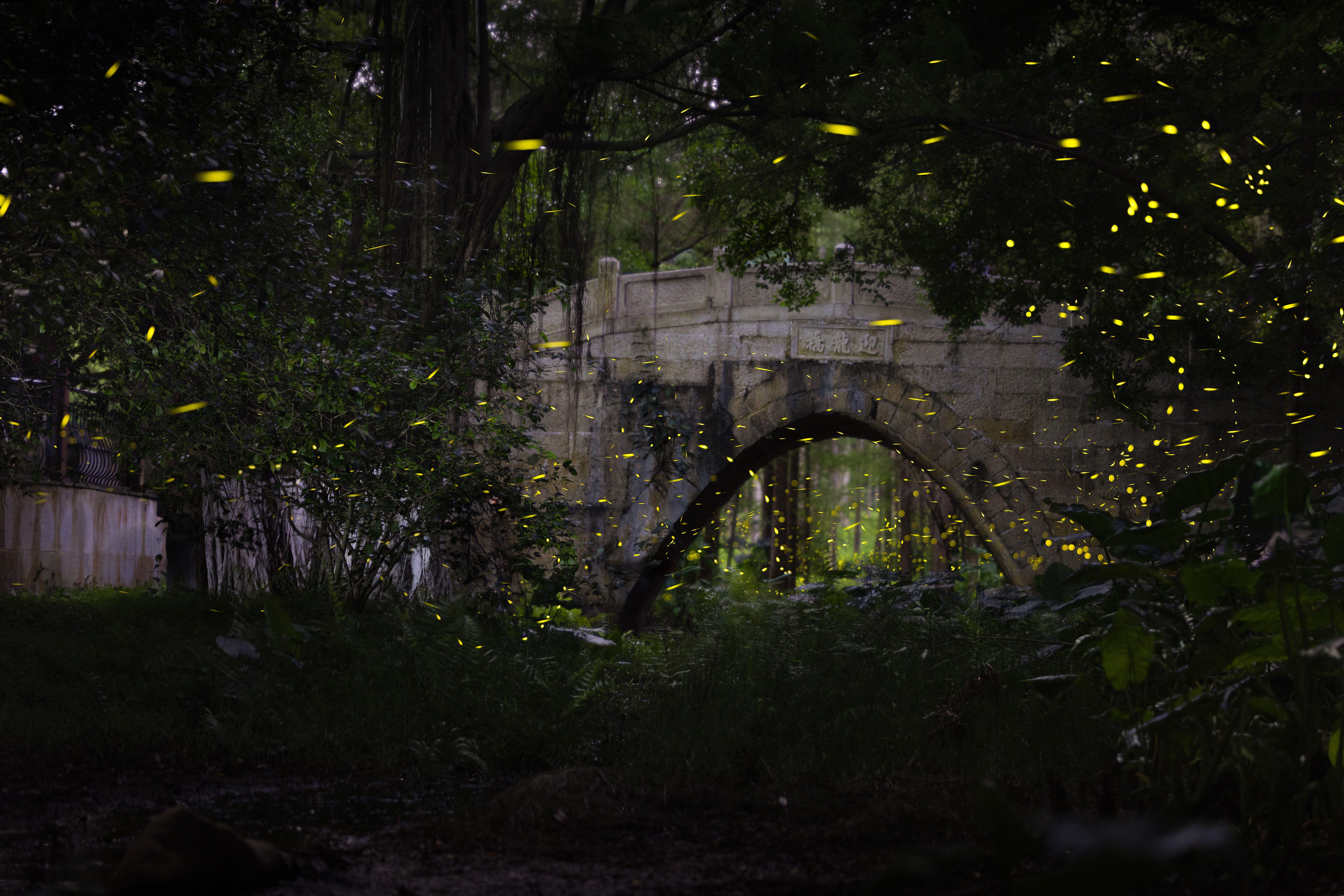 夜色如墨,漫步在大夫山森林公园山间小径,随处可见的点点萤火犹如天上繁星落入凡间, 前阵子的持续降水,似乎让这些夏夜精灵提早了到来的脚步。这段时间每天晚上7点到9点,在大夫山森林公园都会见到这些小家伙的身影,它们轻盈地飞舞,用光的轨迹编织着夏夜的浪漫。